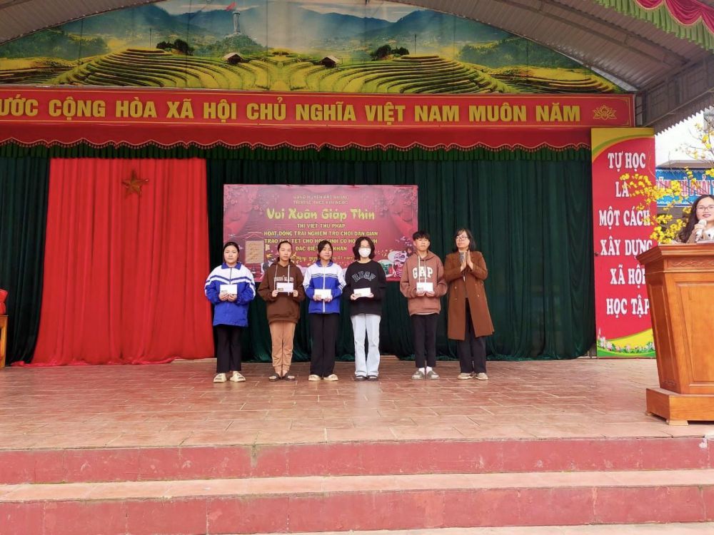 Trao tặng 20 suất quà tết cho 20 HS có hoàn cảnh đặc biệt khó khăn, nhằm động viên chia sẻ cho học sinh nghèo với tinh thần “ lá lành đùm lá rách” đồng thời giúp các em hiểu thêm và biết trân trọng, yêu quý những nét văn hóa truyền thống của dân tộc Việt Nam, góp phần giáo dục học sinh tinh thần tương thân tương ái, biết giúp đỡ bạn bè trong học tập, chia sẻ khó khăn với các bạn có hoàn cảnh khó khăn.