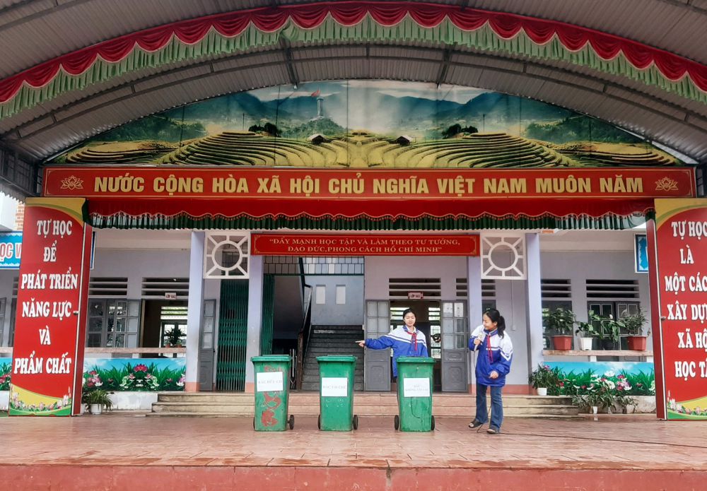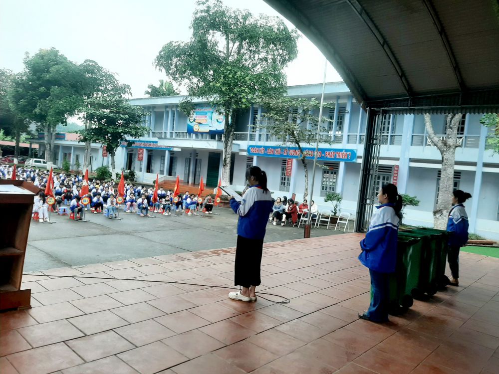 Sáng ngày 04/12/2023 trong tiết SINH HOẠT DƯỚI CỜ, các bạn học sinh trong đội tuyên truyền Măng non Liên đội trường THCS Kim ngọc chia sẻ về một vấn đề quan trọng trong việc bảo vệ môi trường - đó là phân loại rác thải.